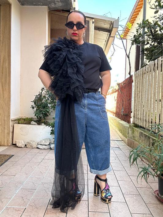 T-SHIRT LUMINA NERA CON MAXI ROUCHES IN TULLE